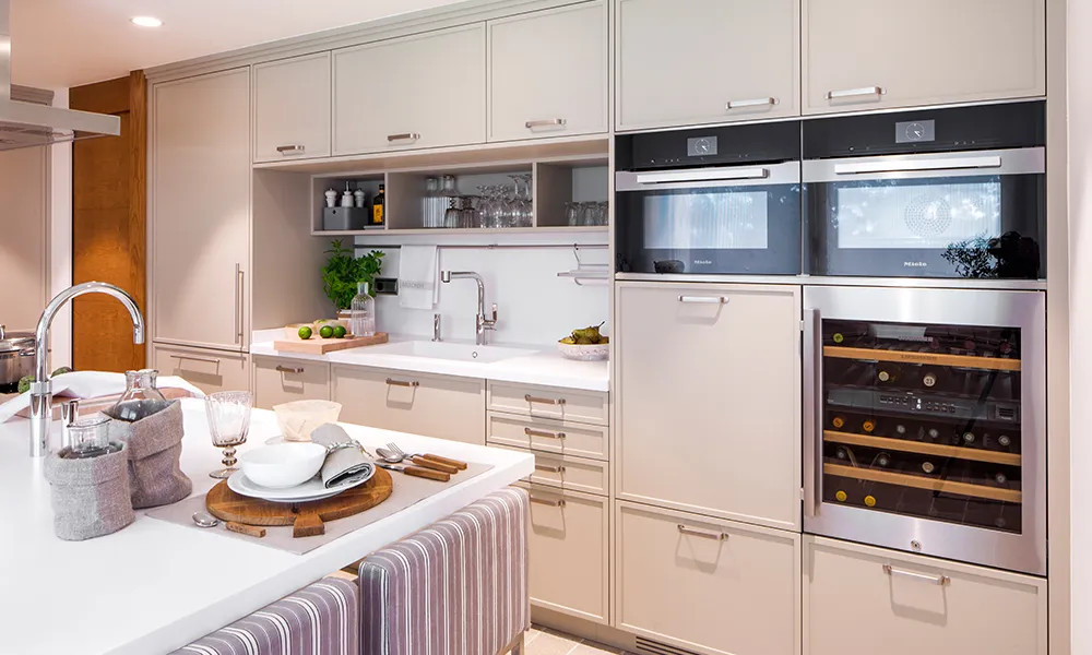 Marcats pel rentaplats, els forns i la vinoteca també s’han posat alts per a més comoditat. De fet, aquesta era una de les prioritats de la propietària de la cuina.