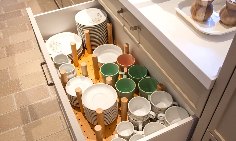 Les gavetes són ideals per a guardar plats i tasses, i van equipades amb uns pivots que permeten ordenar els diferents elements per grandària.