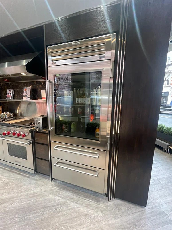 Por otro lado, el viaje también sirvió para ponerse al día en cuanto a las novedades de electrodomésticos Wolf Subzero, una de las marcas más prestigiosas con las que Deulonder trabaja desde hace tiempo. Entre las novedades, esta magnífica barbacoa para cocinar a la brasa con la posibilidad de taparla, de forma que también hace de función de horno, o los últimos diseños de neveras con puerta de cristal para poder ver el interior y los estantes extensibles.