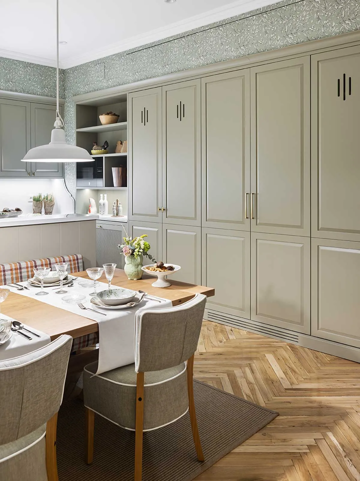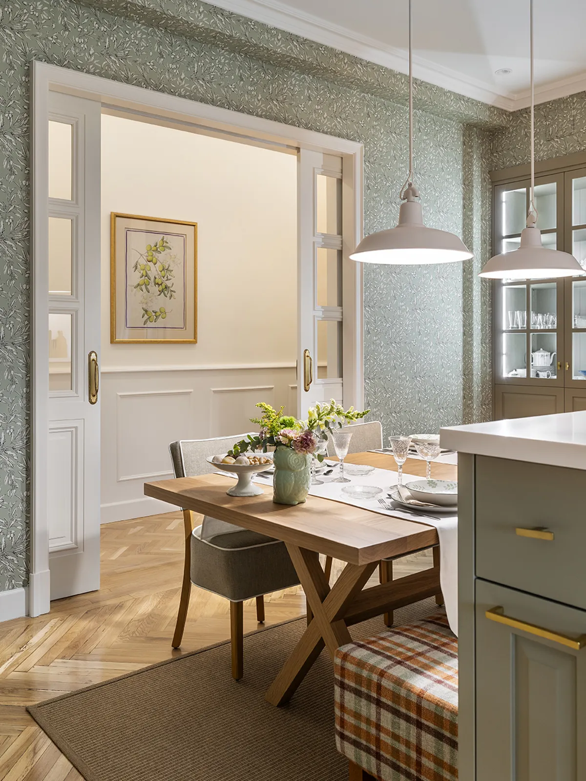 We present the project that Lluïsa Deulonder has recently carried out in a home in the center of Madrid. It is a 34 square meter space that was previously a bedroom and that we have transformed into a magnificent kitchen-dining area with an island. This is the demonstration of how you can take advantage of space with a good distribution and give a refined English touch to a Madrid apartment.