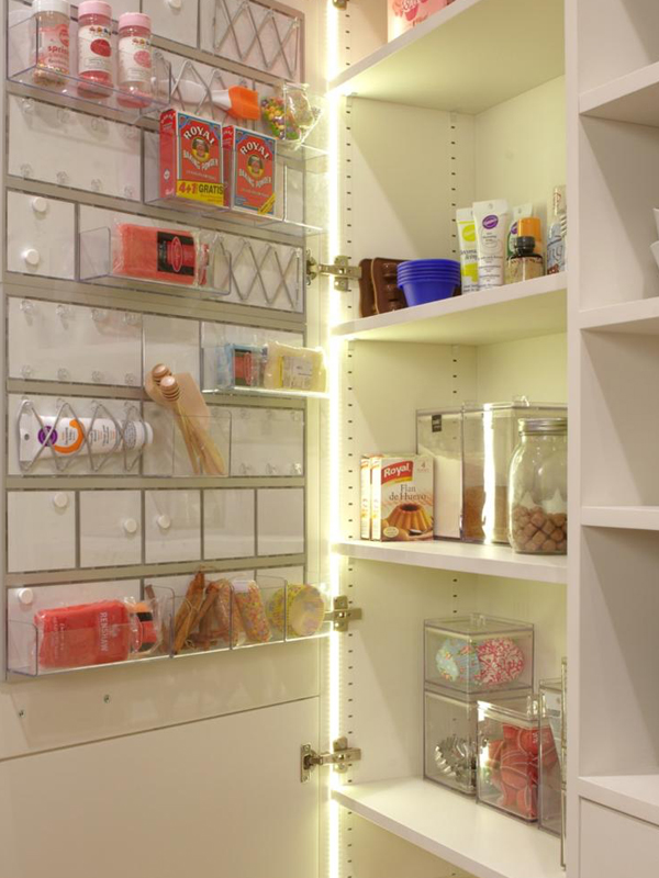 Another similar solution, this time designed to store a large collection of spices and other foods. Stored products this way are very organized and accessible.