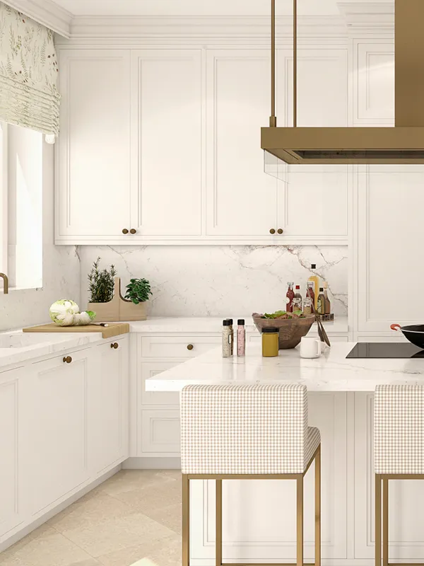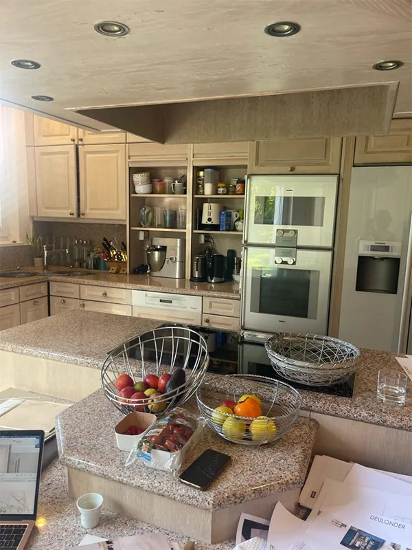 Esta cocina está situada en una zona residencial en Ginebra con unas impresionantes vistas al lago. Vamos a seguir los pasos del proceso del diseño y producción para ver el antes y el después de esta cocina suiza. Una de las particularidades es que se trabajó en gran parte a distancia, puesto que se diseñó en Barcelona, y por este motivo los renders, que son las imágenes creadas por ordenador que nos permiten ver cómo quedará la cocina tras su realización, estaban muy ajustados a la realidad. Es decir, había poco margen de maniobra y por este motivo se pensó cada centímetro con mucho detalle.