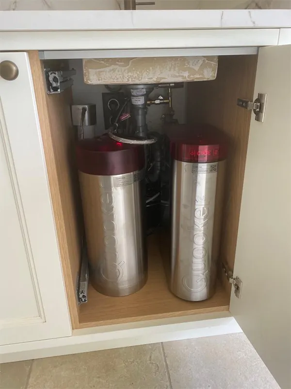 La cocina está equipada con un grifo Quooker, que permite tener agua con gas, sin gas, fría e hirviendo, ideal para la preparación de tés, sin olvidar que también es un sistema ecológico que evita el uso de botellas de plástico.