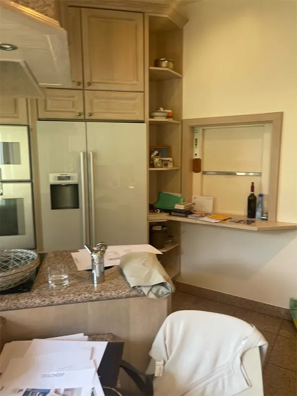 Hemos sacado la nevera de donde estaba originariamente y se ha puesto un mueble con dos puertas retráctiles para guardar los pequeños electrodomésticos.