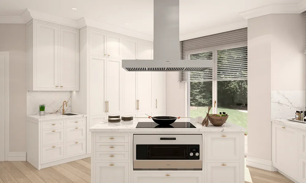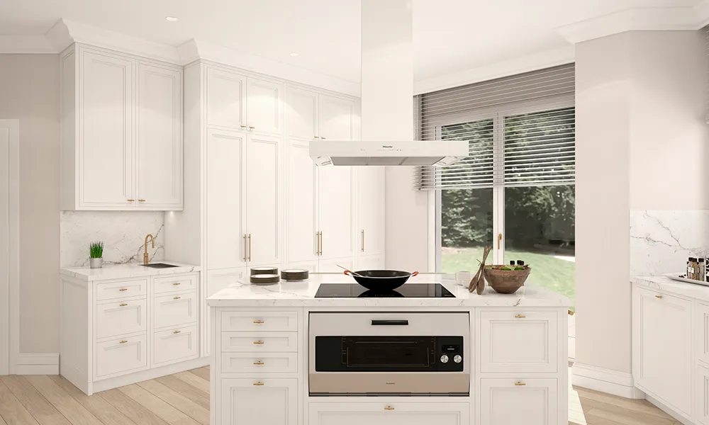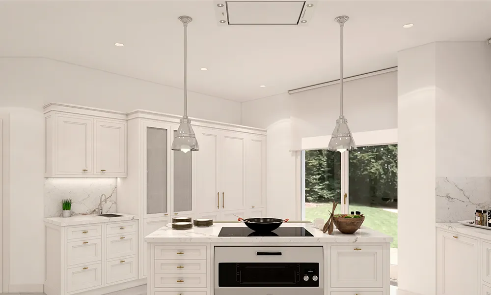 En esta versión se propuso una campana blanca a tono con los muebles de la cocina.