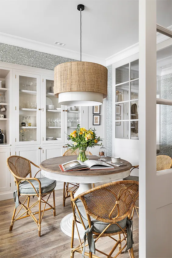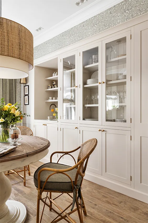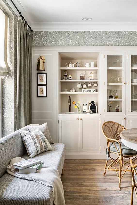 Este año las interioristas han introducido además un delicado papel pintado que arropa la zona office al tiempo que harmoniza con los muebles de la cocina de la misma coloración. El resultado es una atmósfera que potencia la sensación de confort y pulcritud.